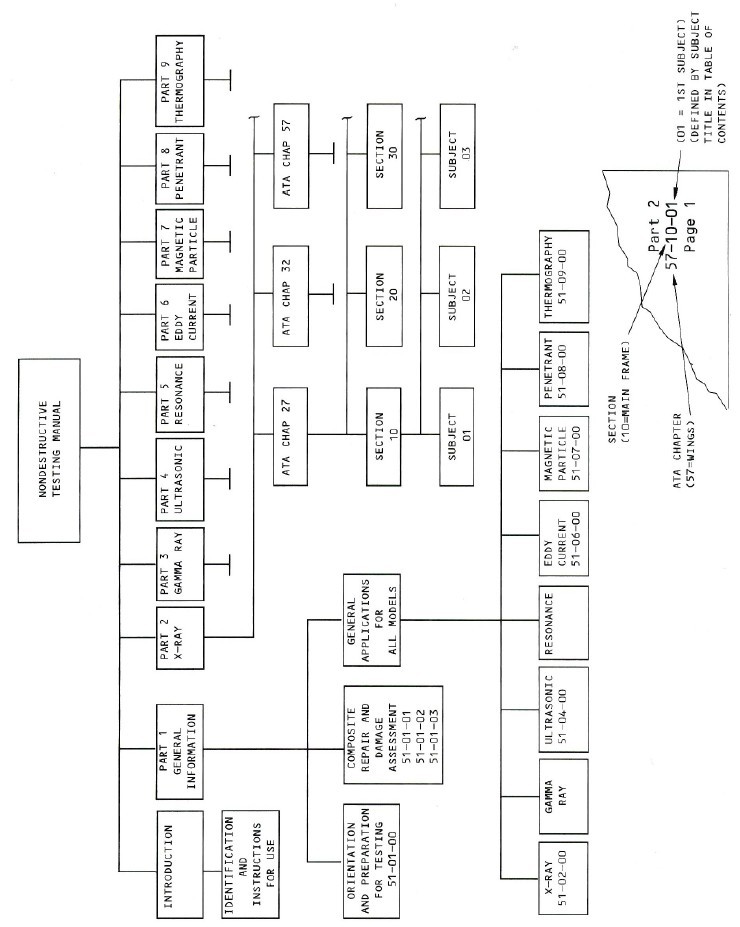無(wú)損檢測(cè)手冊(cè)是機(jī)體、發(fā)動(dòng)機(jī)和部件制造廠編制的無(wú)損檢測(cè)程序,不僅包含主要的和輔助的結(jié)構(gòu),而且包括專利的部件的檢測(cè)程序,是機(jī)體、發(fā)動(dòng)機(jī)和部件制造廠在真實(shí)的構(gòu)件上和原位實(shí)際狀態(tài)下經(jīng)過(guò)驗(yàn)證可以實(shí)施的程序,每種機(jī)型均有相應(yīng)的無(wú)損檢測(cè)手冊(cè),制造廠家定期進(jìn)行更新和修正,在兩次定期進(jìn)行更新和修正之間通常發(fā)布一些臨時(shí)修正,在使用時(shí)要注意采用有效版本。