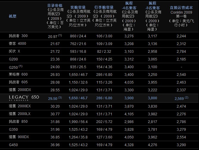 To view this page ensure that Adobe Flash Player version 9.0.124 or greater is installed. 平面布局: 對比總覽: 對比總覽 (1) 灣流公司官網(wǎng)(2009年9月) (2) 直接運營成本(DOC)的計算是基于《Conklin & de Decker 2009》第一卷假設(shè)的條件。計算時考慮了羅爾斯羅伊斯企業(yè)維護(hù)方案(RR Corporate Care)發(fā)動機維護(hù)成本。本結(jié)果僅供對比之用。 (3) 萊格賽650的價格是基于2010年經(jīng)濟狀況