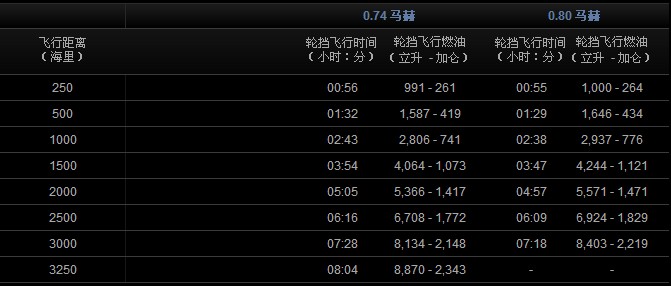 輪擋時(shí)間及輪擋燃油 假設(shè)條件: A1E發(fā)動(dòng)機(jī); ISA; 無(wú)風(fēng)。 NBAA IFR 備份燃油: 8名乘客 輪擋時(shí)間及輪擋燃油