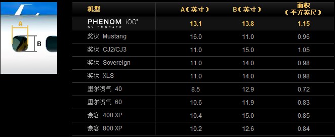 窗戶尺寸對比 飛鴻100公務(wù)機窗戶 |