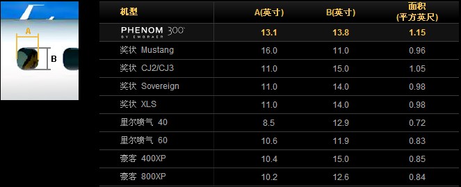 飛鴻300公務(wù)機(jī)最佳價(jià)值 1 - 按照2008年5月出版的公務(wù)/商用飛機(jī)采購(gòu)手冊(cè)的說明,所有飛機(jī)的航程均是在攜帶了符合NBAA IFR 規(guī)定的飛往100海里備降場(chǎng)的備份燃油量,并且搭載4位乘客每位重200磅的基礎(chǔ)上給出的。 2 - 國(guó)際標(biāo)準(zhǔn)大氣、最大起飛重量、海平面。 3 - 所有競(jìng)爭(zhēng)對(duì)手產(chǎn)品的價(jià)格均在2007/2008年度公務(wù)/商用飛機(jī)采購(gòu)手冊(cè)數(shù)據(jù)的基礎(chǔ)上給出。飛鴻300飛機(jī)2008年1月的價(jià)格等同于2005年1月685萬美元的價(jià)格。 窗戶尺寸對(duì)比 飛鴻300公務(wù)機(jī)窗戶尺寸對(duì)比 |