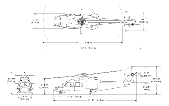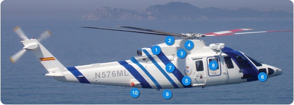 客艙 Accommodations 客艙長(zhǎng)度 Cabin Length 7.92 ft 2.41 m ![]() 西科斯基S-76C++直升機(jī)尺寸 安全設(shè)備 Safety ![]() 西科斯基S-76C++直升機(jī)安全系統(tǒng) 1, Arriel 2S2 engines |