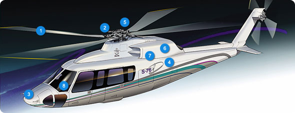 安全設(shè)備 Safety ![]() 西科斯基S-76D直升機(jī)安全系統(tǒng) 1, New enhanced flaw tolerant composite main rotor blades