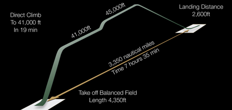 Performance 性能 Falcon performance 獵鷹性能 機會就在眼前。2000S有直飛3,350海里無需加油的續(xù)航能力, 有無與倫比的飛行速度和靈活性,以及舒適寬大的客艙,其誘人的魅力無法阻擋。 Go direct 直飛 With its certified altitude of 47,000 ft and its power to climb directly to 41,000 ft, the Falcon 2000S takes you above most traffic and weather. And it can fly 3,350 nm nonstop. Due to its excellent short field capabilities, you can take off and land at smaller, more convenient airports. 獵鷹2000S具有47,000英尺的最大認證高度,直接爬升41,000英尺,不費吹灰之力。獵鷹2000S能帶領(lǐng)乘客穿云破霧,突破各種航行和氣候條件限制,即使連續(xù)飛行3,350海里也無需?俊<由贤昝赖男龅夭倏匦阅,可更好地起飛降落各類機場,為您提供更多便捷服務(wù)。 ![]() 達索獵鷹2000S公務(wù)機直飛 Expanding your horizons 擴大您的視野 從北京到新加坡,從香港到孟買,從成都到雅加達無須中途?俊<词勾┰絹喼拗钡綒W洲的飛行任務(wù),也僅需?恳淮尉湍軋A滿完成。獵鷹2000S本身就是一個經(jīng)典杰作。 BFL at MTOW: SL - ISA 4,325 ft 1,318 m