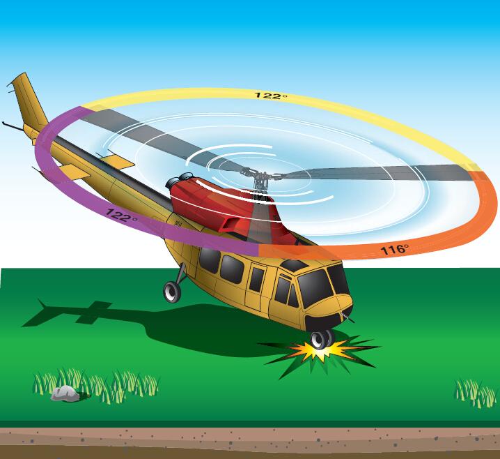 ![]() 圖 3 槳葉間的相位發(fā)生改變破壞了平衡 4.2.3 地面共振的改出方法 |