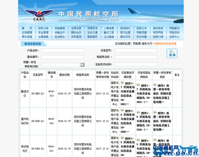 http://www.caac.gov.cn/licencewebui/AirportEquipment.aspx