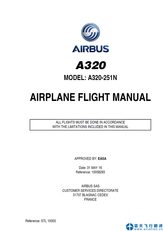 北京藍(lán)天飛行翻譯有限公司完成2019年1月14日版本空客 A320NEO 飛行機(jī)組操作手冊(cè)、快速檢查單、飛機(jī)飛行手冊(cè)翻譯任務(wù) 14 JAN 19 Airbus A320NEO FLIGHT CREW OPERATING MANUAL, QUICK REFERENCE HANDBOOK and AIRPLANE FLIGHT MANUAL Translation 機(jī)隊(duì)包括4架空客A320NEO,構(gòu)型為320-251N(即A320NEO飛機(jī)),手冊(cè)為2019年1月14日版本A320NEO飛行機(jī)組操作手冊(cè)(FLIGHT CREW OPERATING MANUAL)、A320NEO快速檢查單(QUICK REFERENCE HANDBOOK)、A320NEO飛機(jī)飛行手冊(cè)(AIRPLANE FLIGHT MANUAL)。 ![]() A320NEO飛行機(jī)組操作手冊(cè) A320NEO FLIGHT CREW OPERATING MANUAL ![]() A320NEO快速檢查單 A320NEO QUICK REFERENCE HANDBOOK ![]() A320NEO飛機(jī)飛行手冊(cè) A320NEO AIRPLANE FLIGHT MANUAL