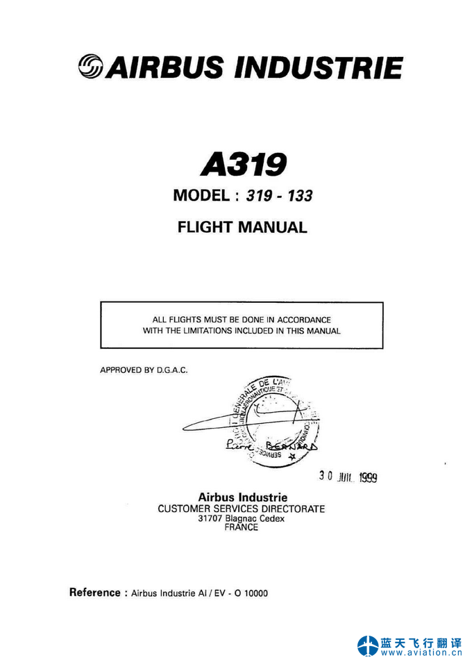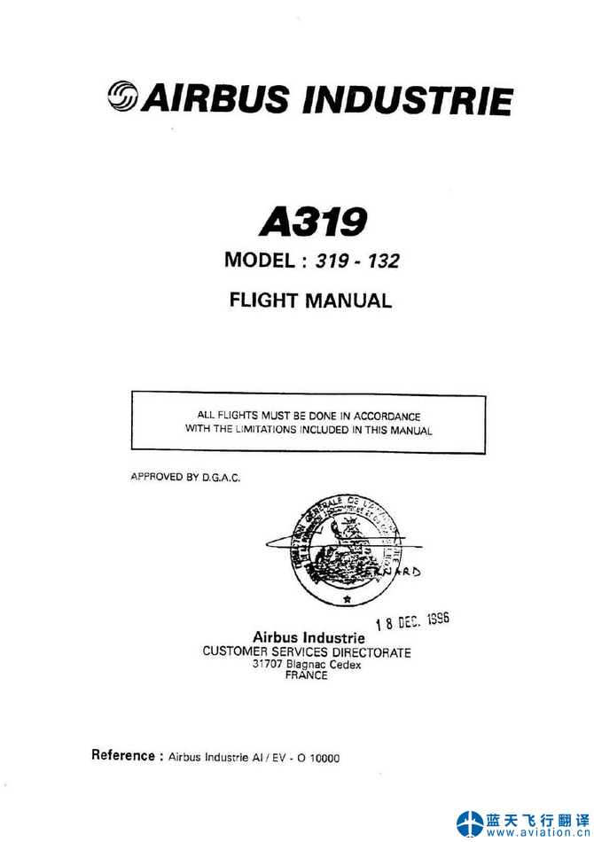 北京藍(lán)天飛行翻譯公司完成航空公司11架空客A319/A320飛行機(jī)組操作手冊(FCOM FLIGHT CREW OPERATING MANUAL)和AFM飛機(jī)飛行手冊(AFM AIRPLANE FLIGHT MANUAL)翻譯任務(wù) 11 DEC 19 A319/A320 FLIGHT CREW OPERATING MANUAL and AIRPLANE FLIGHT MANUAL Translation