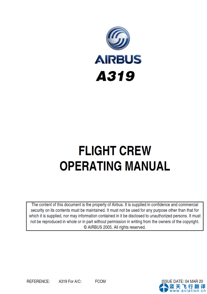 ![]() ACJ319 FLIGHT CREW OPERATING MANUAL ACJ319 飛行機(jī)組操作手冊(cè)