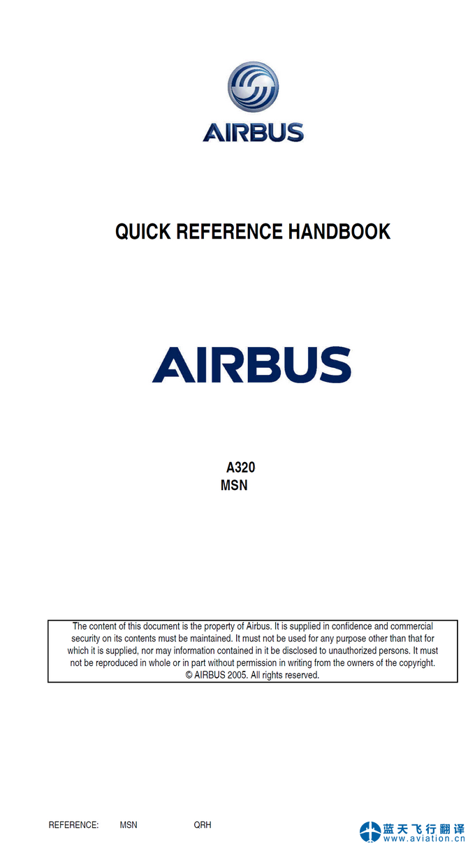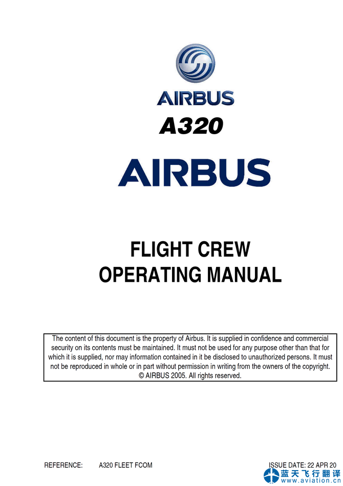 北京藍(lán)天飛行翻譯有限公司完成大型航空公司72架空客A320飛行機(jī)組操作手冊(cè)(FCOM FLIGHT CREW OPERATING MANUAL)、A320快速檢查單(QRH QUICK REFERENCE HANDBOOK)和A320飛機(jī)飛行手冊(cè)(AIRPLANE FLIGHT MANUAL)翻譯任務(wù) 22 APR 20 A320 FLIGHT CREW OPERATING MANUAL, QRH QUICK REFERENCE HANDBOOK and AIRPLANE FLIGHT MANUAL Translation