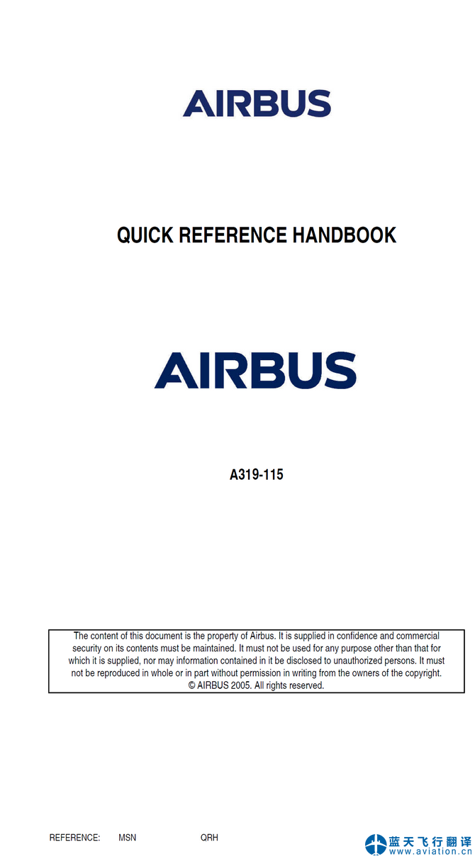 北京藍天飛行翻譯公司承接大型公務機公司的2020年7月15日版本ACJ319快速檢查單(QRH QUICK REFERENCE HANDBOOK)翻譯任務 15 JUL 20 ACJ319 QUICK REFERENCE HANDBOOK Translation
